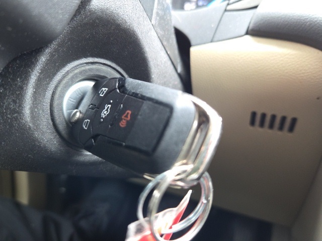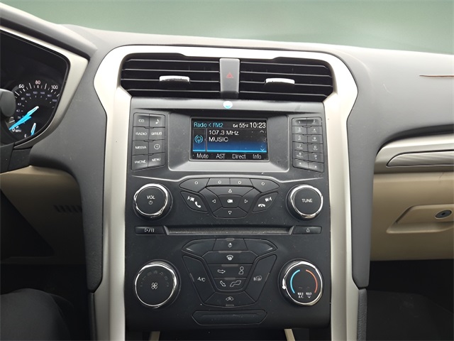 Vehicle Options: 17" Aluminum Wheels, 4-Wheel Disc Brakes, 6 Speakers, ABS brakes, Air Conditioning, Alloy wheels, AM/FM radio: SiriusXM, Brake assist, Bumpers: body-color, CD player, Cloth Front Bucket Seats, Compass, Delay-off headlights, Driver door bin, Driver vanity mirror, Dual front impact airbags, Dual front side impact airbags, Electronic Stability Control, Four wheel independent suspension, Front anti-roll bar, Front Bucket Seats, Front Center Armrest, Front reading lights, Fully automatic headlights, Heated power door mirrors, Illuminated entry, Knee airbag, Low tire pressure warning, Occupant sensing airbag, Outside temperature display, Overhead airbag, Overhead console, Panic alarm, Passenger door bin, Passenger vanity mirror, Power door mirrors, Power driver seat, Power steering, Power windows, Radio data system, Radio: AM/FM Stereo/MP3/Single-CD, Rear anti-roll bar, Rear reading lights, Rear seat center armrest, Rear window defroster, Remote keyless entry, Security system, Speed control, Speed-sensing steering, Speed-Sensitive Wipers, Split folding rear seat, Steering wheel mounted audio controls, SYNC Communications & Entertainment System, Tachometer, Telescoping steering wheel, Tilt steering wheel, Traction control, Trip computer, Turn signal indicator mirrors, and Variably intermittent wipers.